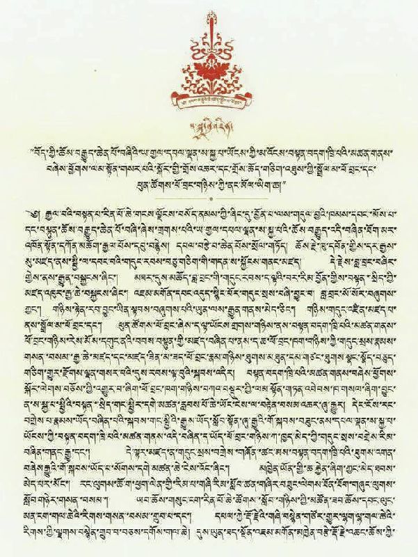 現在,因為對於未來繼任者指示的重要性,我給予這一項贈禮—一個新的薩迦法王王位選任方式,這個方案經過兩個王宮相互討論以及同意,並且經由尊者達賴喇嘛認可並給予祝福,這個薩迦法王王位選任方式將在之後實施。